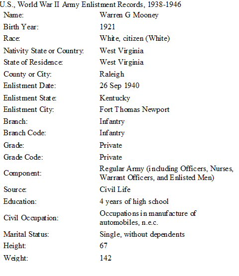 Born: April 15, 1923 in McAlpin, Raleigh County, West Virginia.