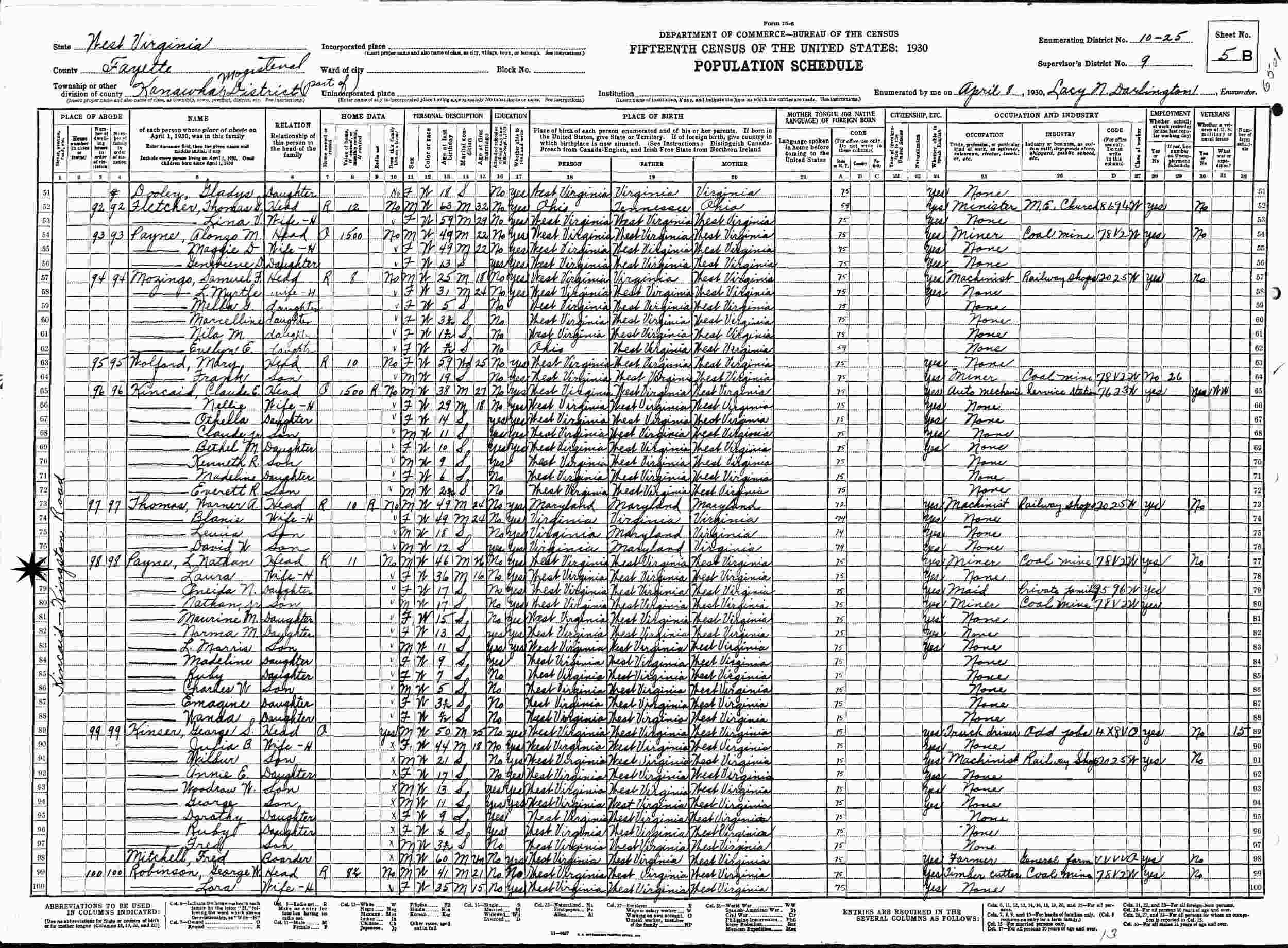April 29, 1940 - Supervisor's District 3, Enumeration District 10-33, Kincaid, Kanawha District, Fayette County, West Virginia.