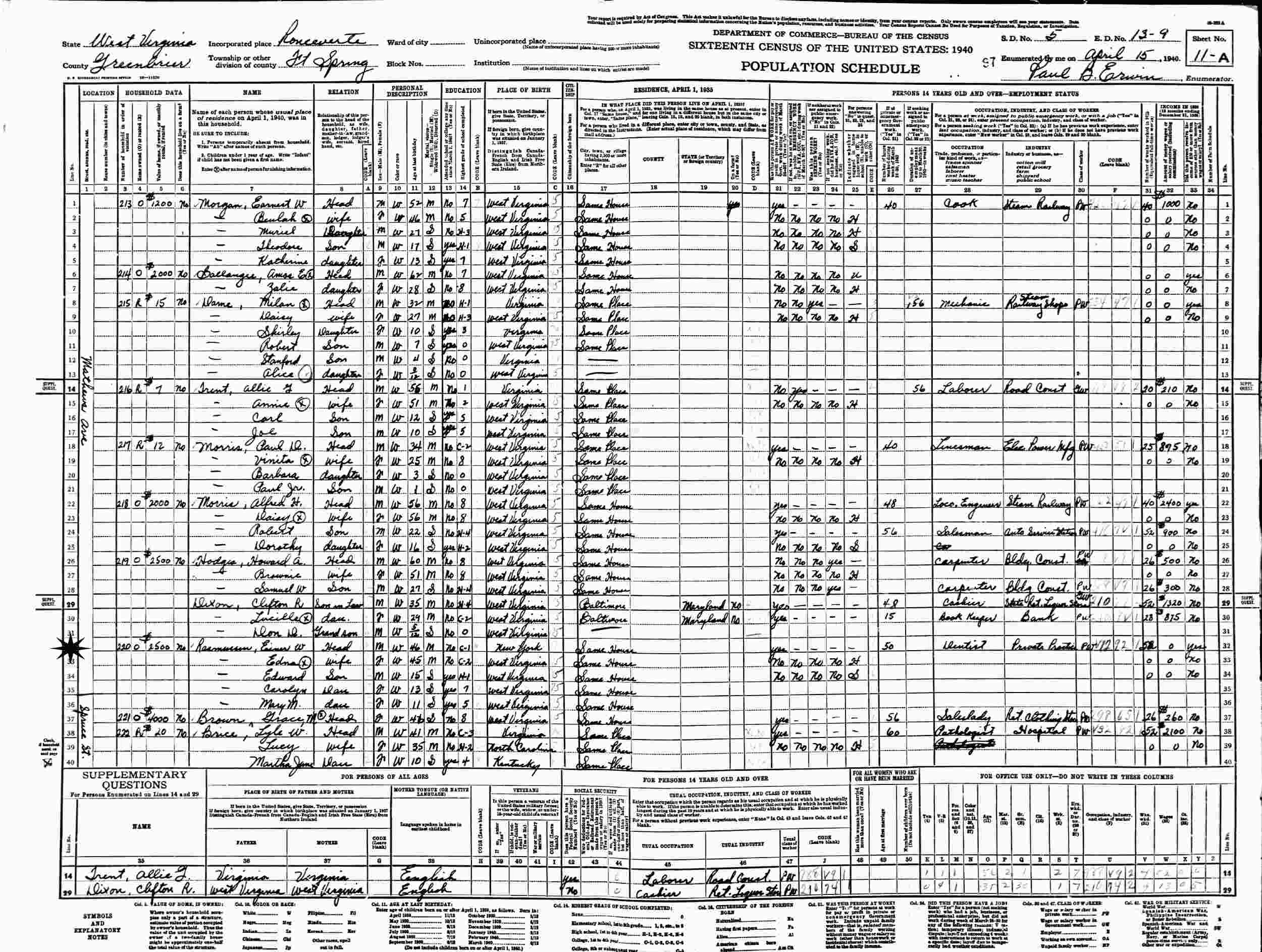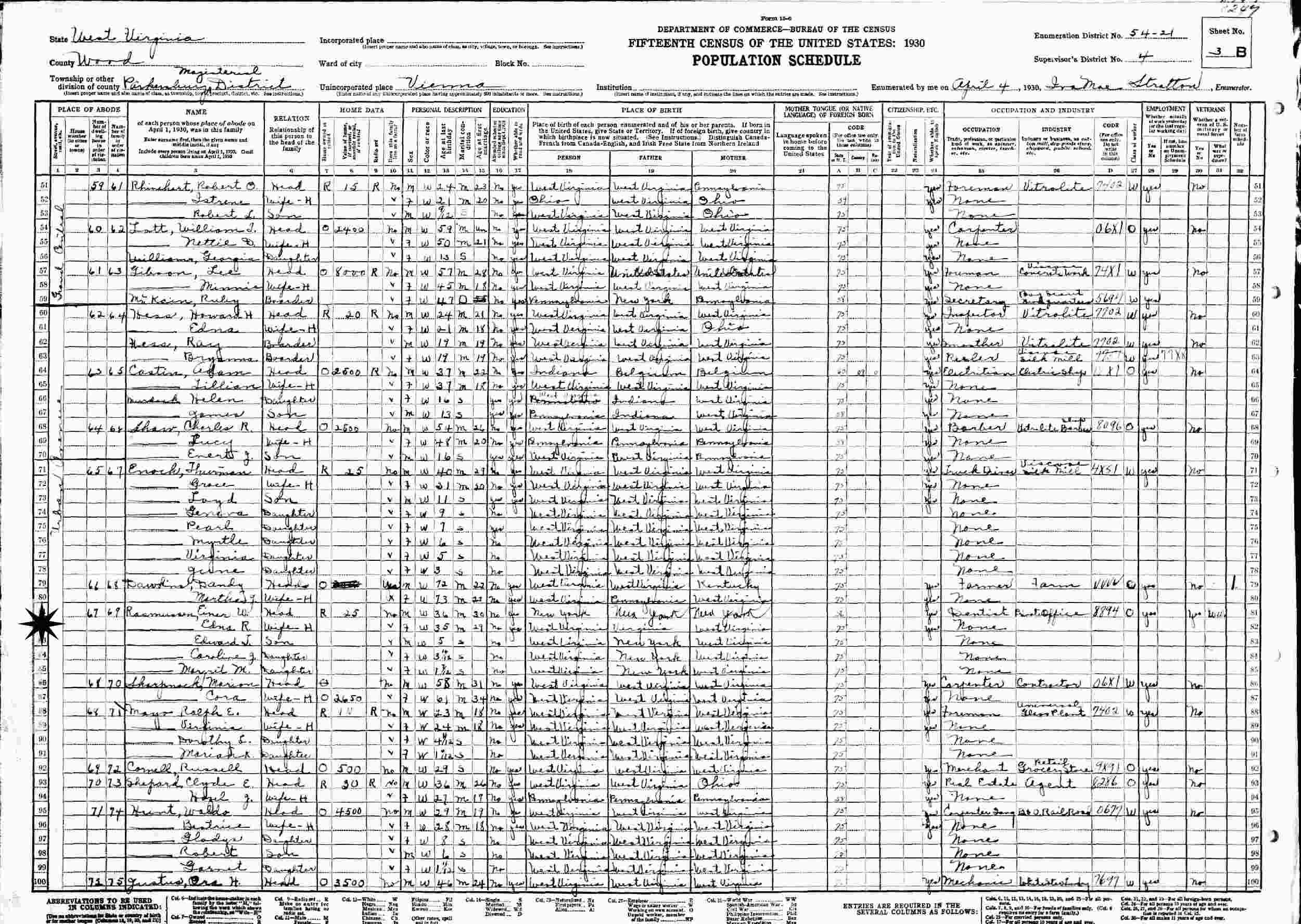 April 4, 1930 - Urban Avenue, Supervisor's District 4, Enumeration District 54-21, Parkersburg Magisterial District, Vienna, Wood County, West Virginia.
