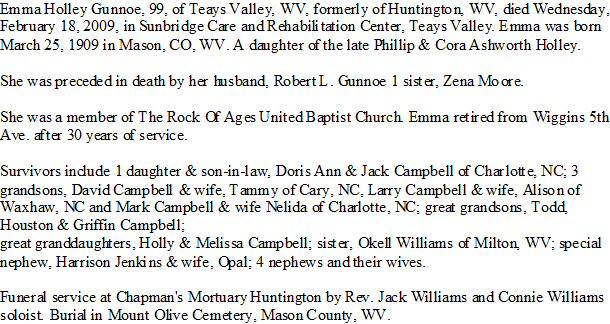 Notes for EMMA HOLLEY BOWLES GUNNOE: