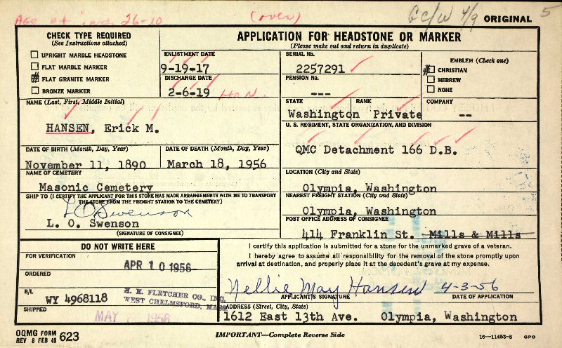 Died: March 18, 1956 in Seattle, King County, Washington.