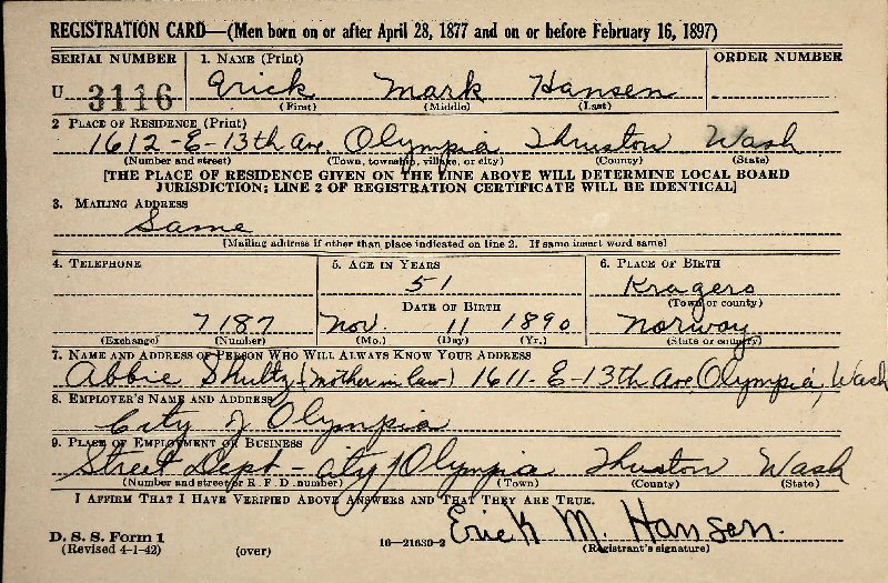 1942 - 1612 E 13th Avenue, Olympia, Thurston County, Washington.