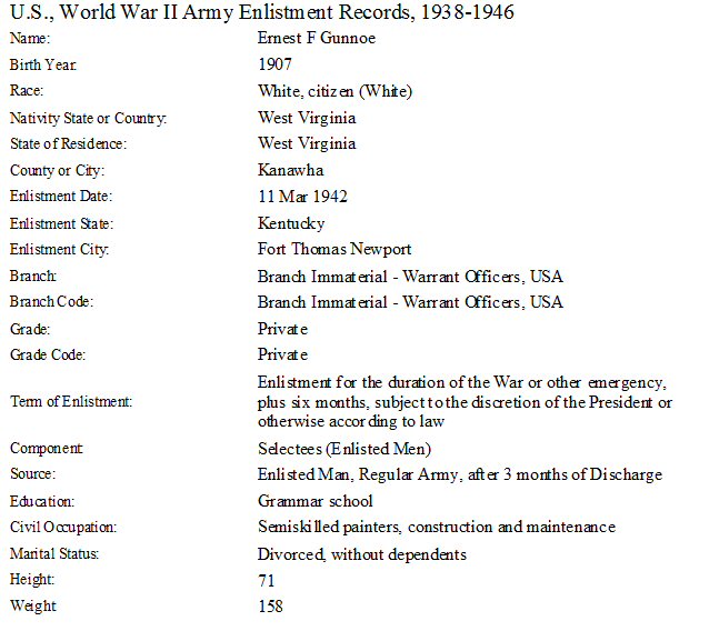 Notes for ERNEST F GUNNOE: