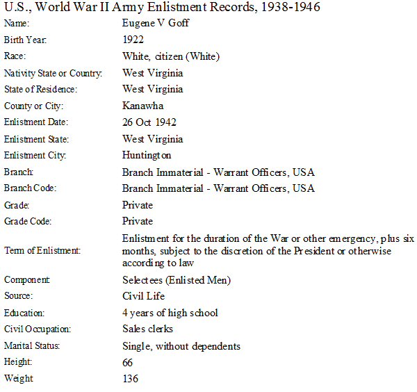 1983-1987 - EugeneVGoffWWIIArmyEnlistmentRecord.