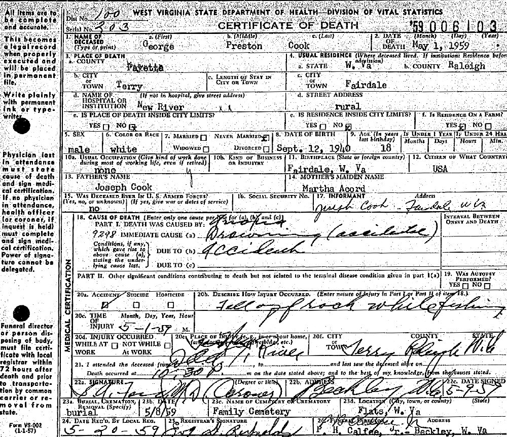 Last Residence: Fairdale, Raleigh County, West Virginia.