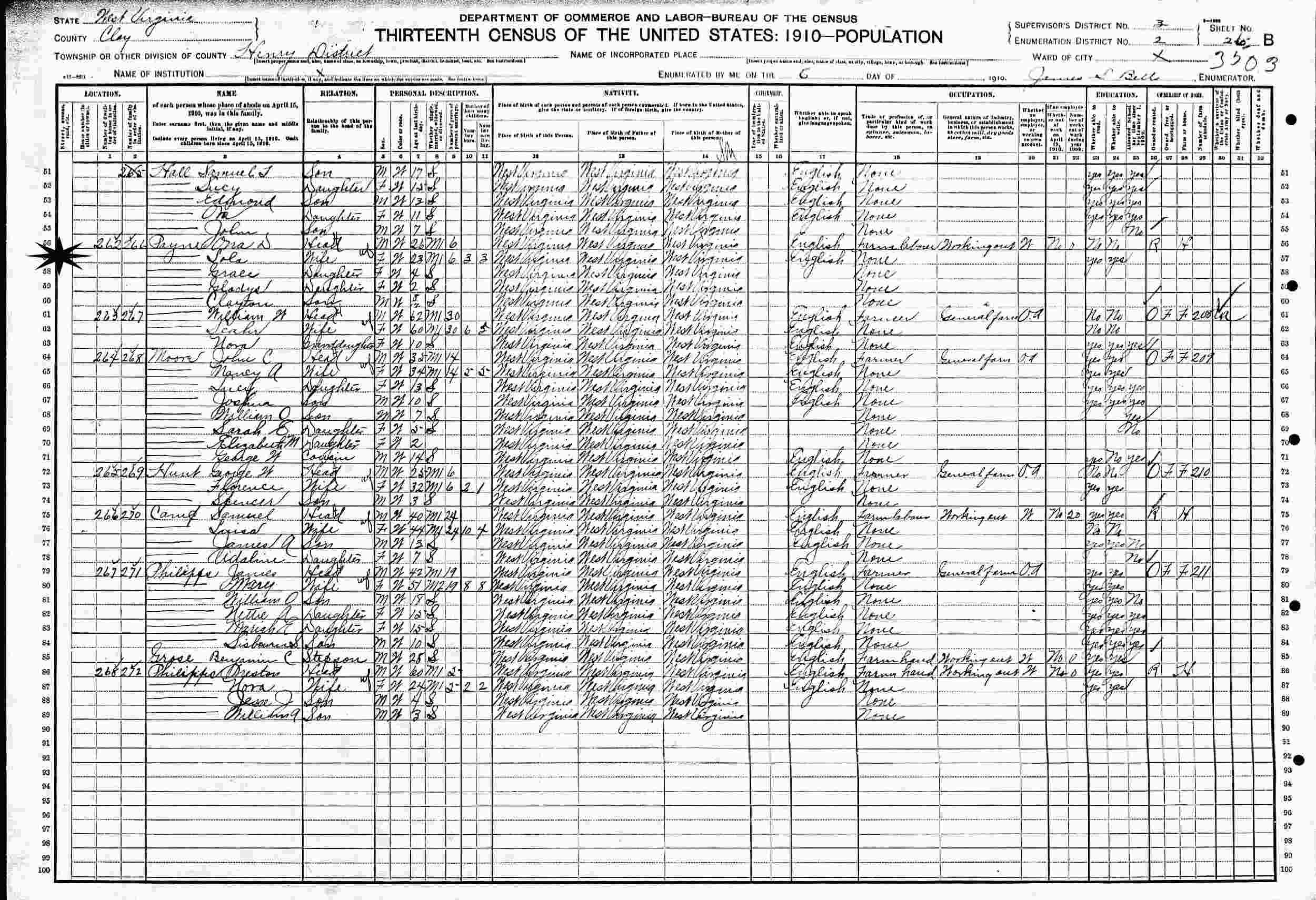 1910 - Supervisor's District 3, Enumeration District 2, Henry District, Clay County, West Virginia.