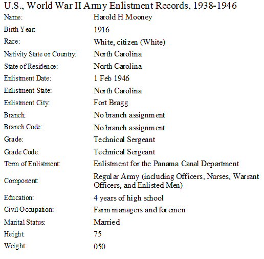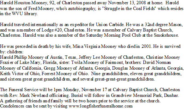 Notes for HAROLD HOUSTON MOONEY: