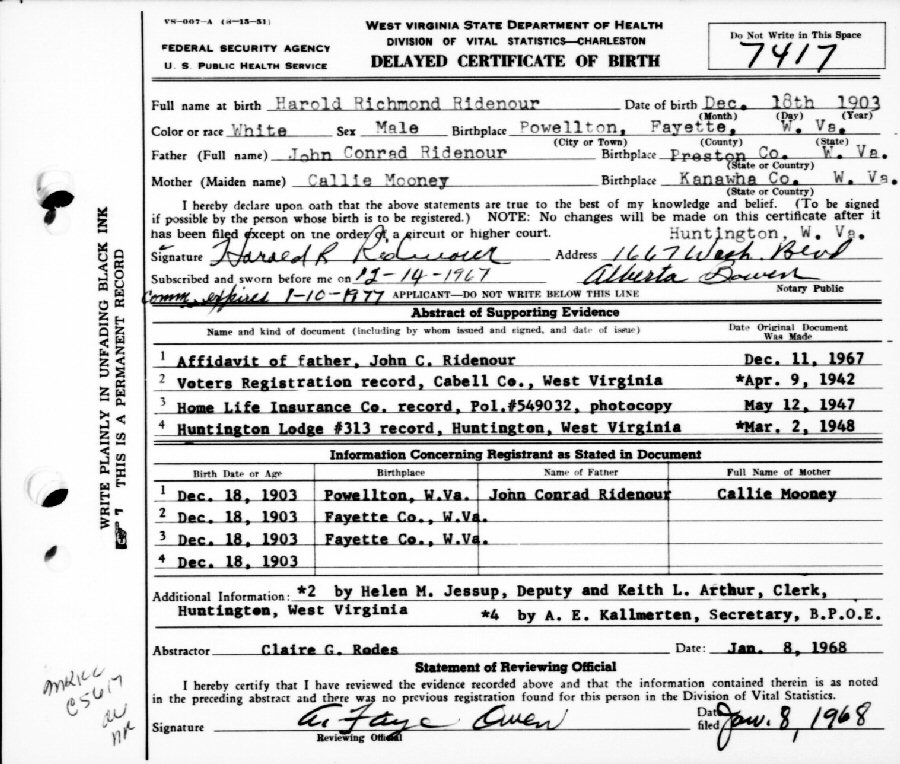 Born: December 18, 1903 in Powellton, Fayette County, West Virginia.