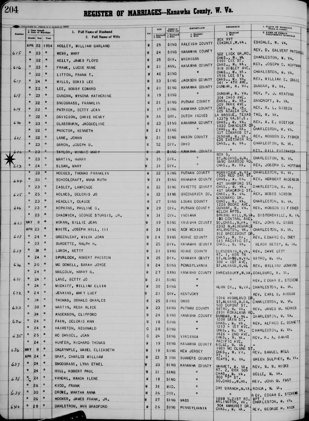 (2) Mary Sybil Sloan April 24, 1954 in Charleston, Kanawha County, West Virginia. (Marriage License: April 23, 1954.)