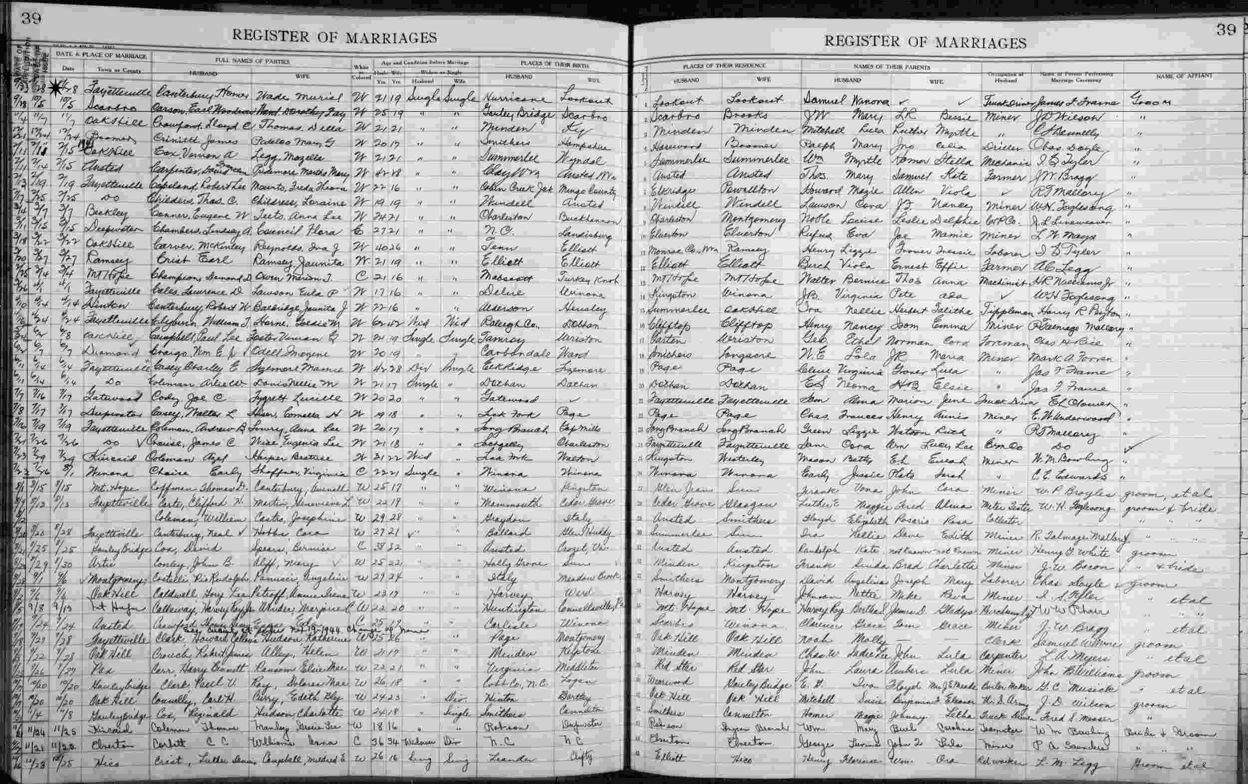 Married: Muriel Eloise Wade September 28, 1940 in Fayetteville, Fayette County, West Virginia.