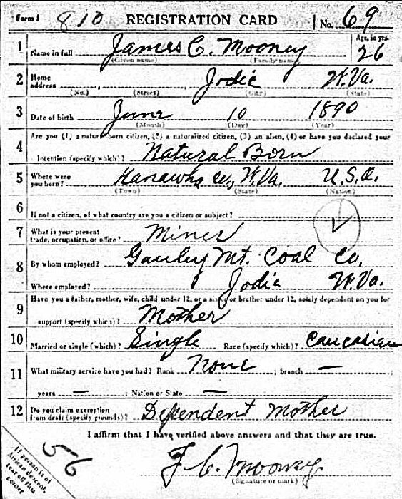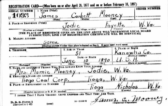 Notes for JAMES CORBETT MOONEY, SR.: