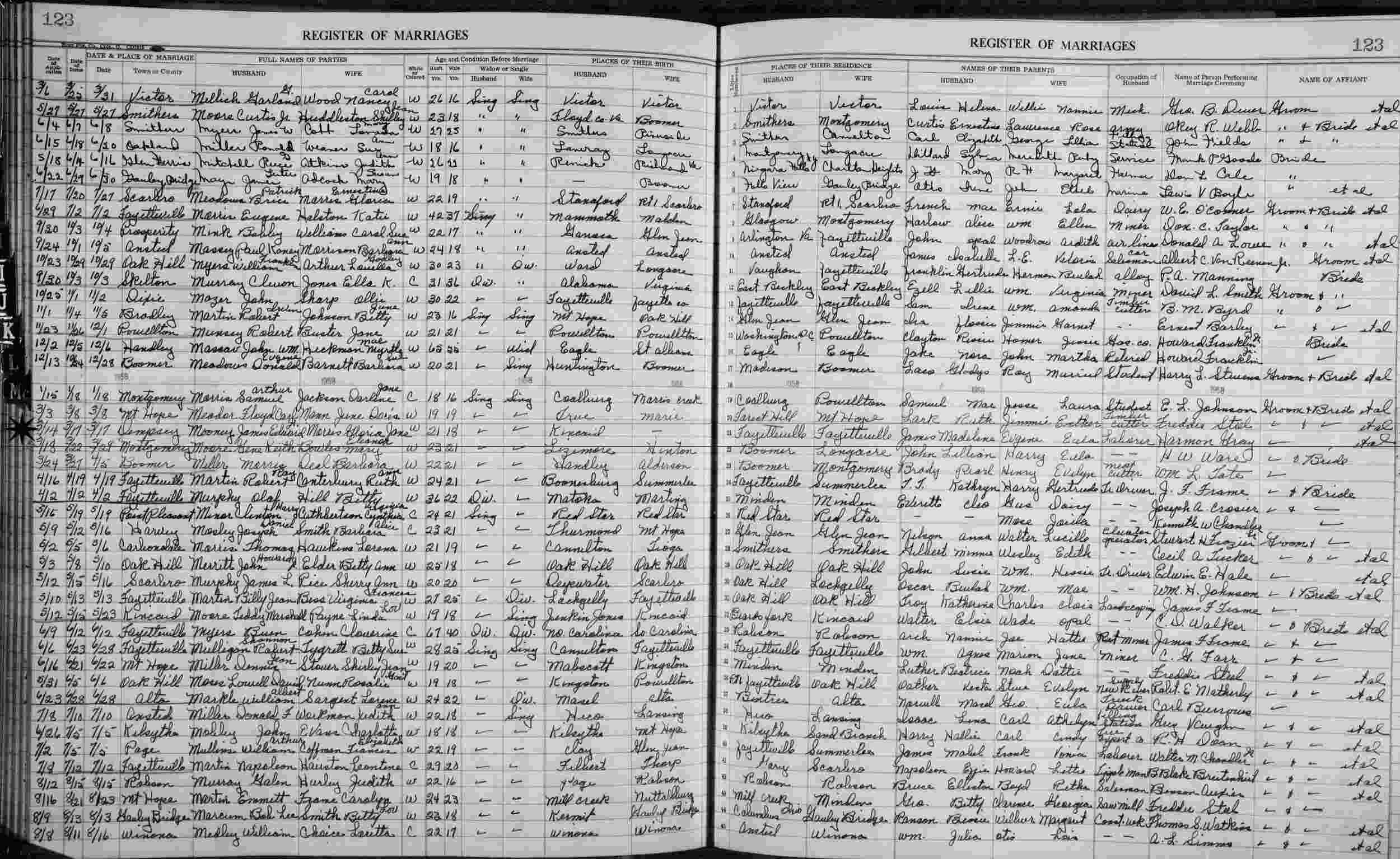 Married: Gloria Morris March 17, 1958 in Dempsey, Fayette County, West Virginia. (Marriage License: March 14, 1958.)