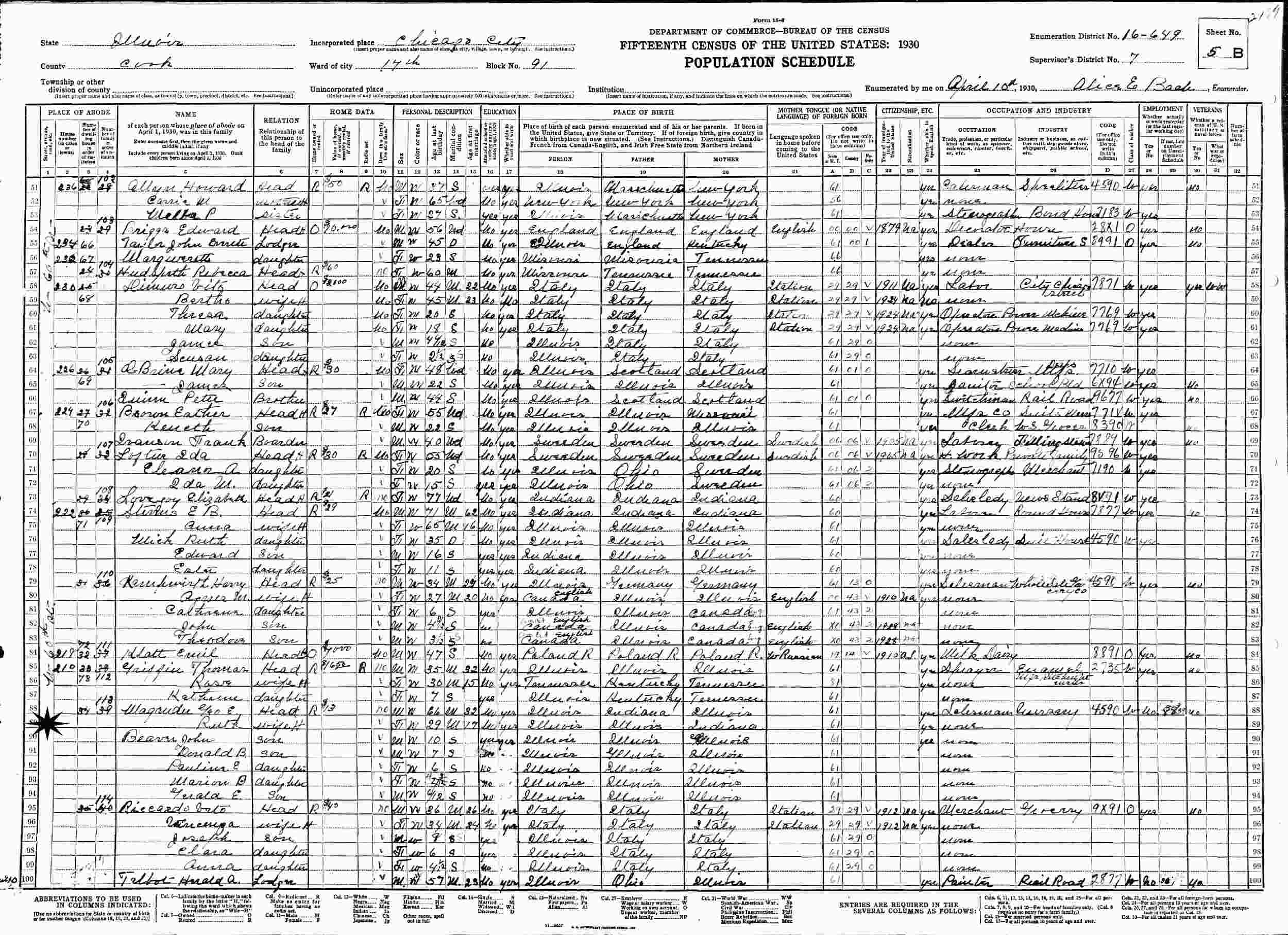 April 10, 1930 - 210 W 60th Street, Ward 17, Block 91, Supervisor's District 7, Enumeration District 16-649, Chicago, Cook County, Illinois.