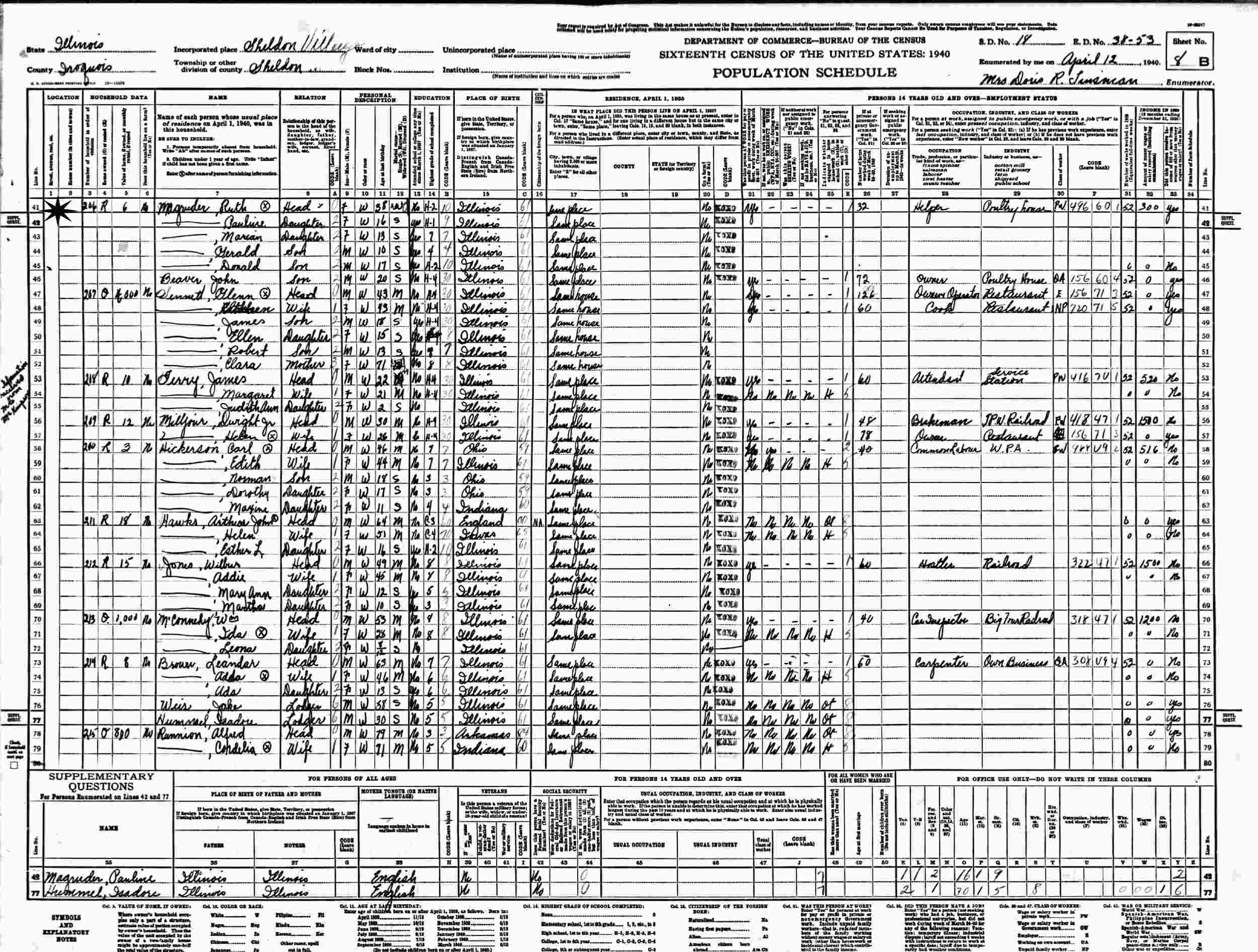 April 12, 1940 - Supervisor's District 18, Enumeration District 38-53, Sheldon, Iroquois County, Illinois.