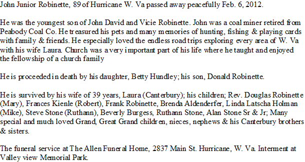 Died: February 06, 2012 in Hurricane, Putnam County, West Virginia.