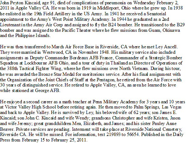 Died: February 2, 2011 in Apple Valley, San Bernardino County, California.