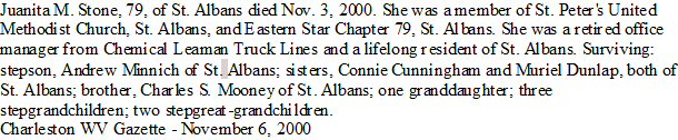 Notes for JUANITA MOONEY LAYTON MARKHAM MINNICH STONE: