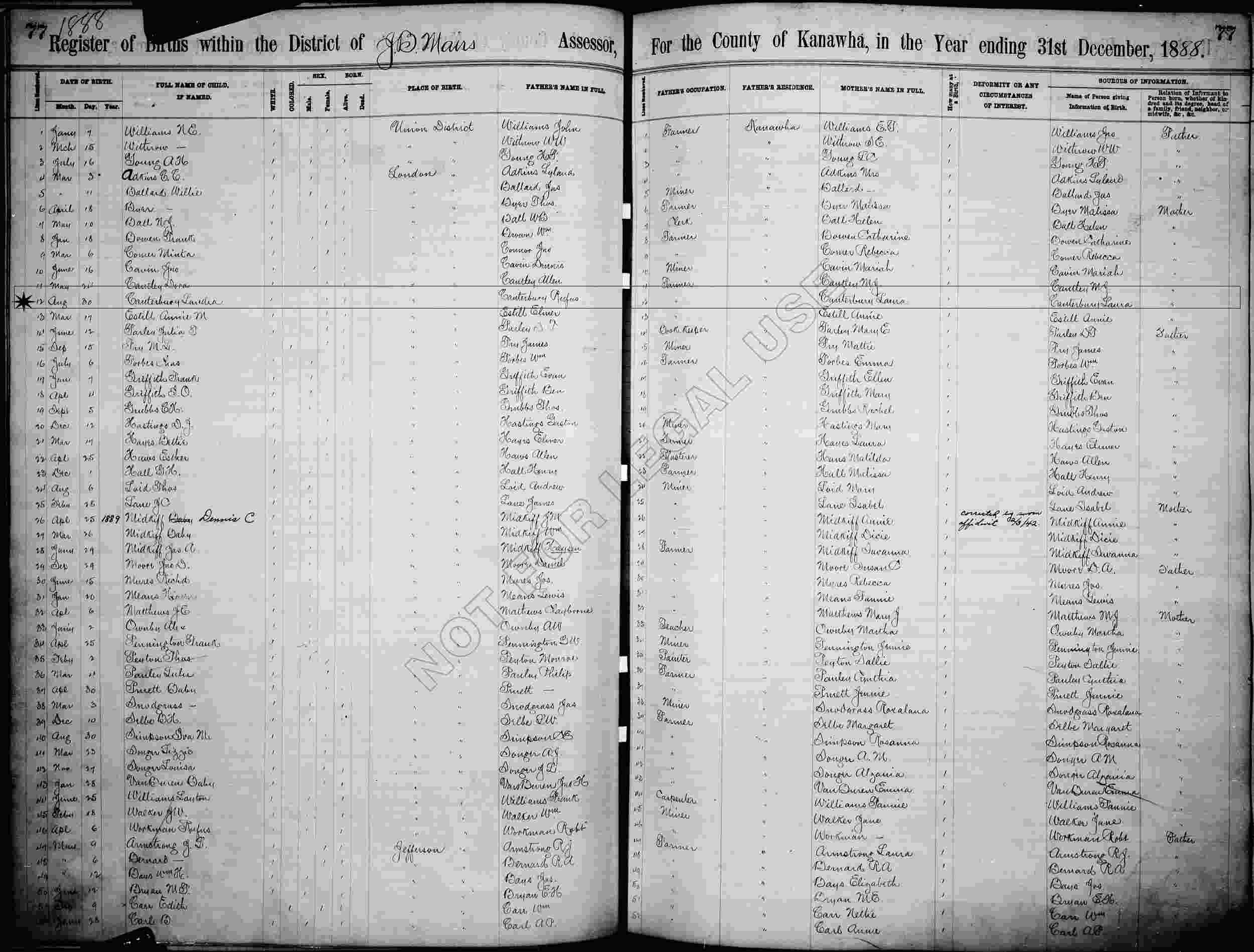 Born: August 1888 in London, Kanawha County, West Virginia.