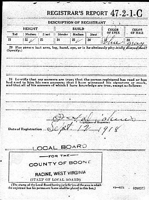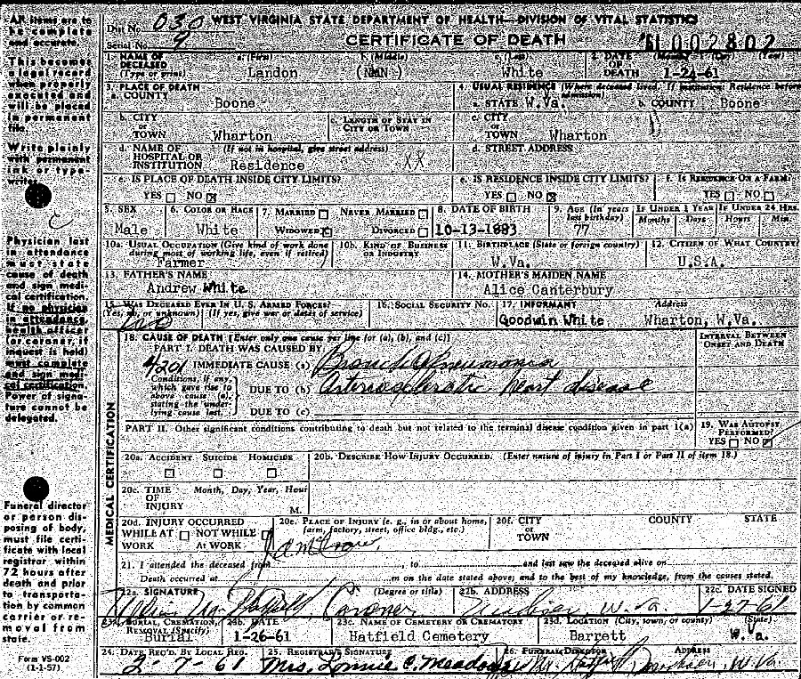 Died: January 24, 1961 in Wharton, Boone County, West Virginia.