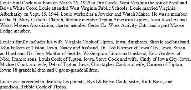 Notes for LOUIE EARL COOK: