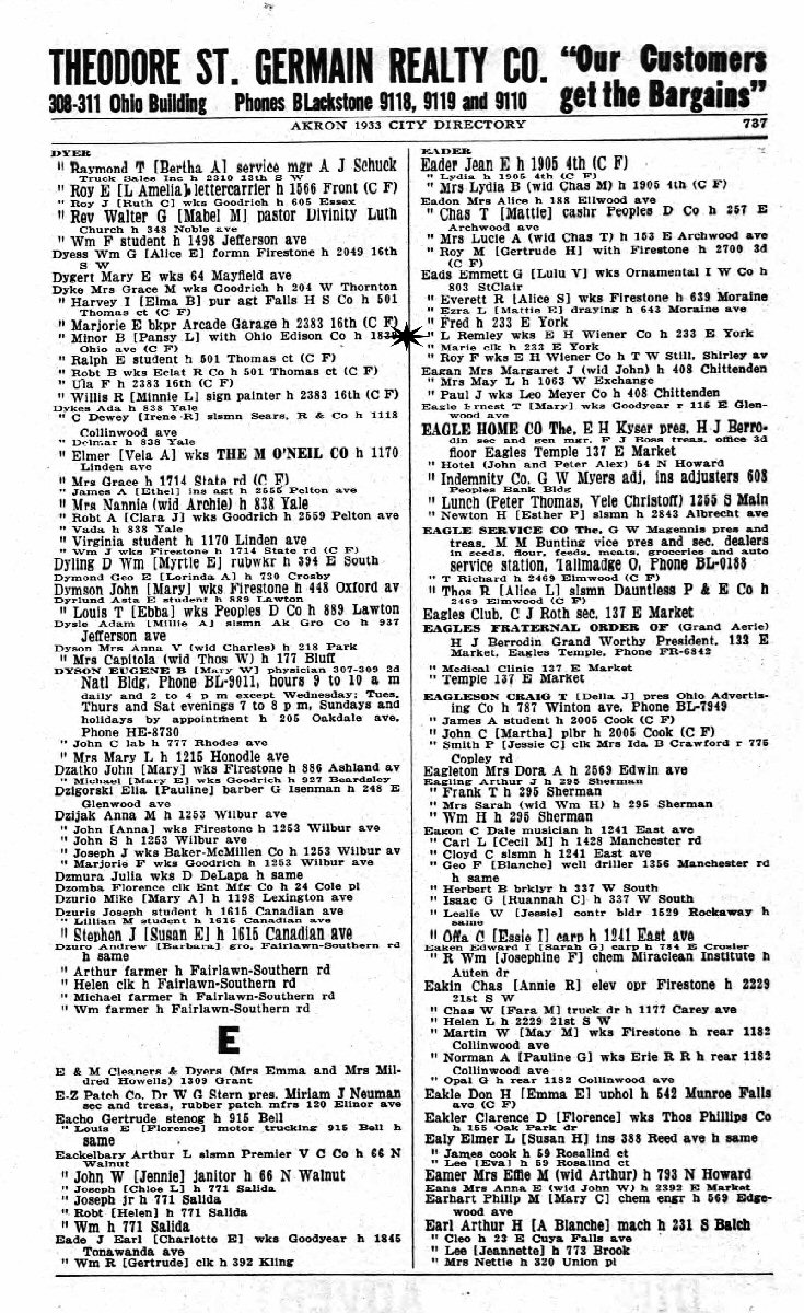 1933 - 233 E York, Akron, Summit County, Ohio.