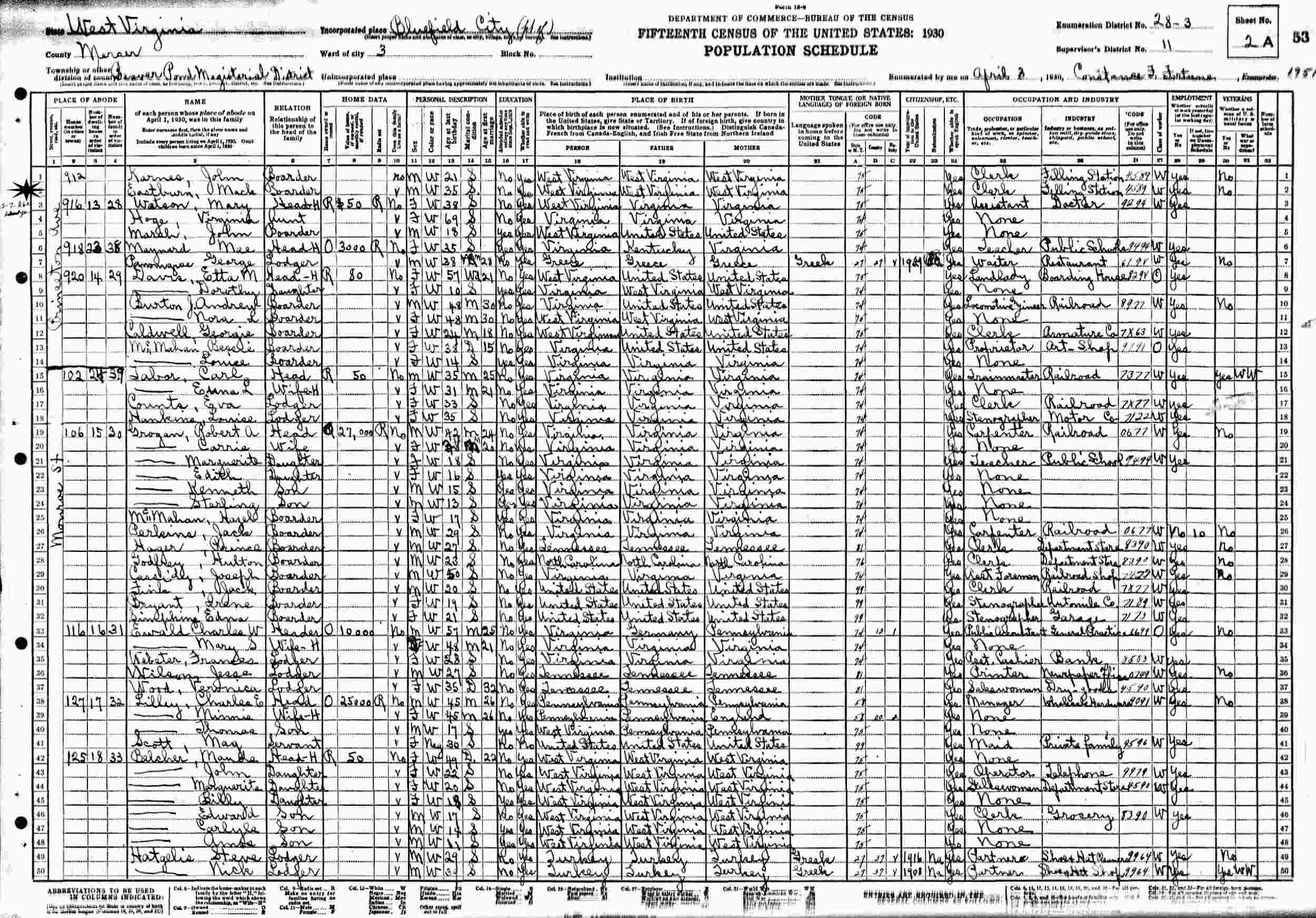 April 3, 1930 - 912 Princeton Avenue, Ward 3, Supervisor's District 11, Enumeration District 28-3, Beaver Pond Magisterial District, Bluefield City, Mercer County, West Virginia.