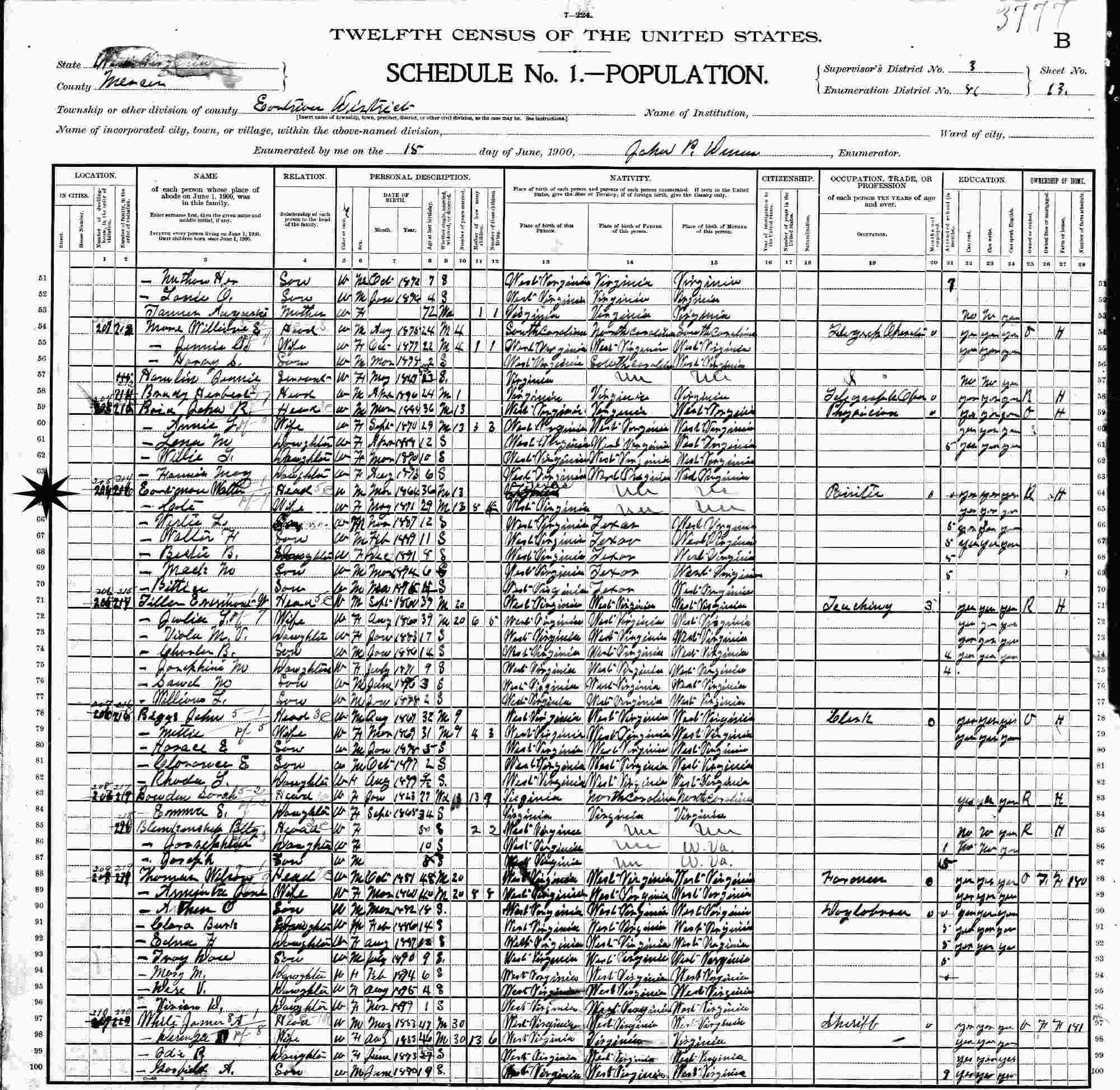 June 15, 1900 - Supervisor's District 3, Enumeration District 46?, East River District, Mercer County, West Virginia.