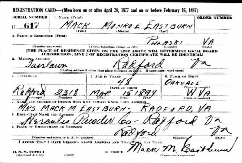 Born: March 15, 1896 in Oakvale, Harrison County, West Virginia.