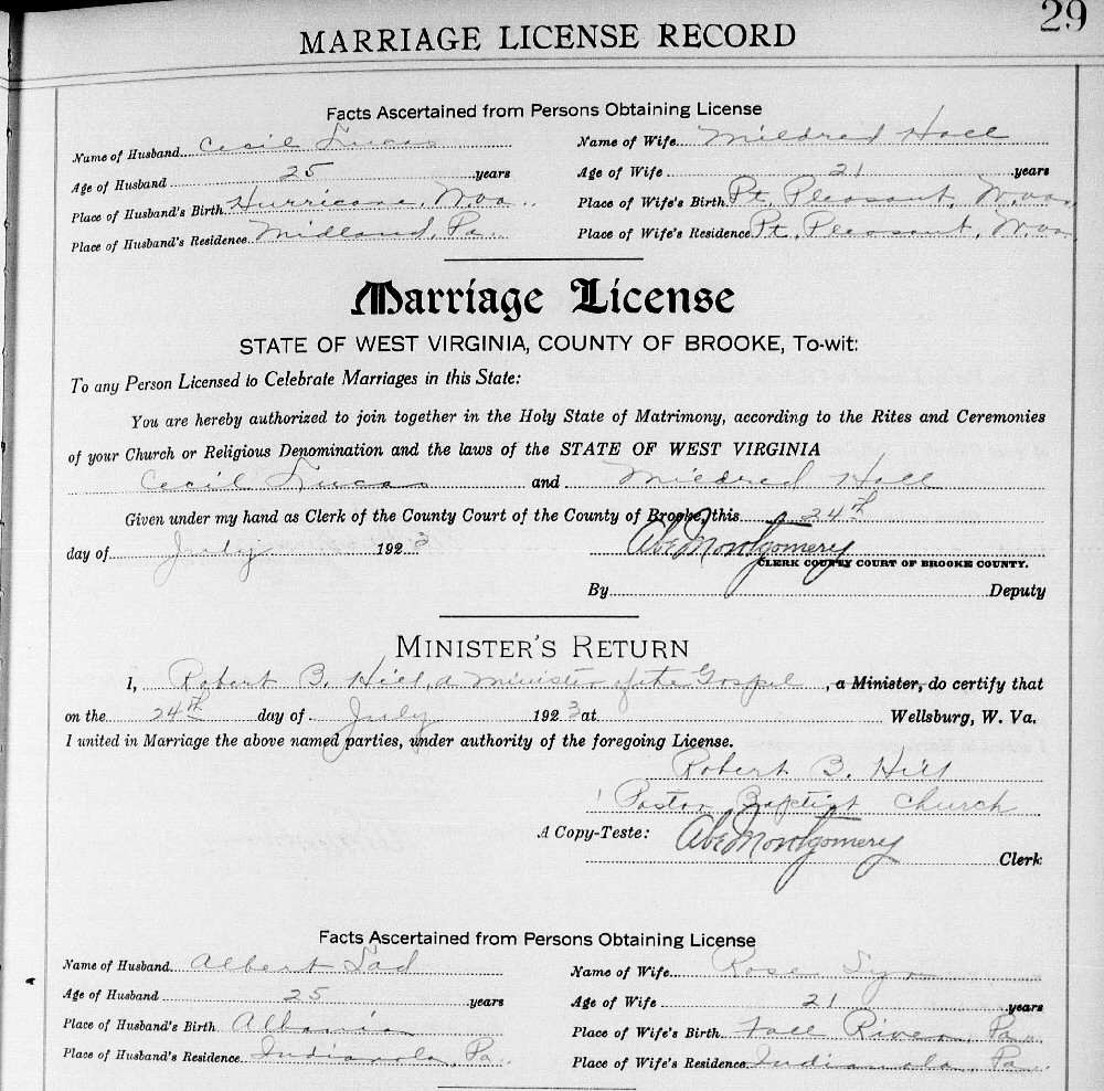 Married: Cecil Earl Lucas July 24, 1923 in Wellsburg, Brooke County, West Virginia.