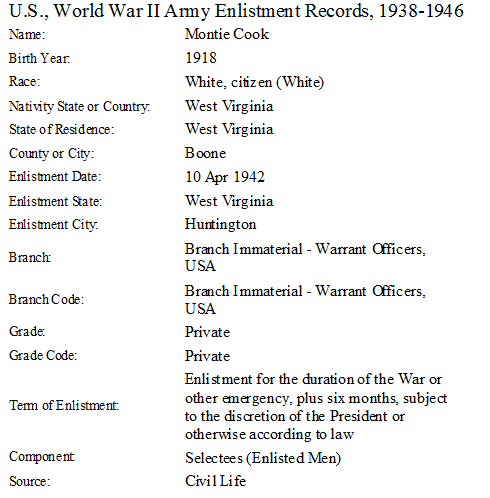 Military Service: April 9, 1942-July 15, 1945 - U.S. Army.
