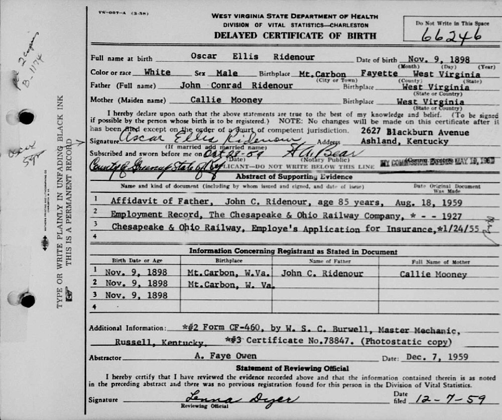 Notes for OSCAR ELLIS RIDENOUR: