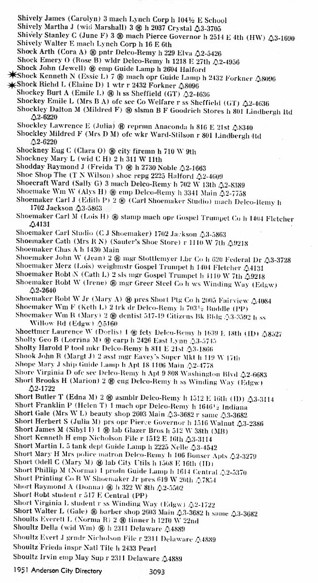 1951 - 2432 Forkner, Anderson, Madison County, Indiana.