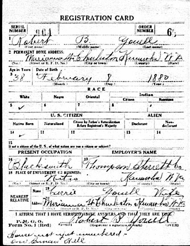 Spetember 12, 1918 - Marianna, Charleston, Kanawha County, West Virginia.