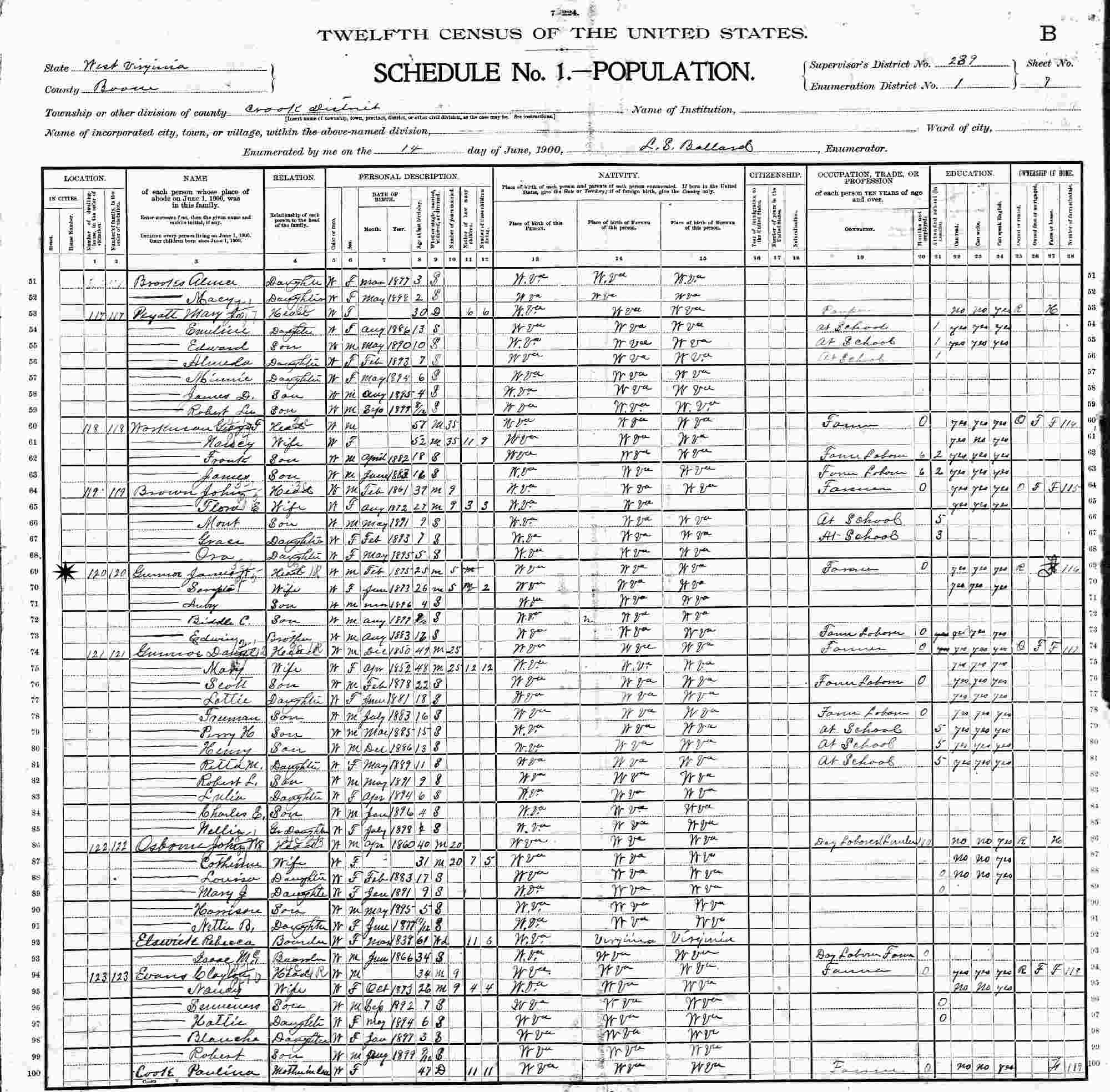 June 14, 1900 - Supervisor's District 289, Enumeration District 1, Crook District, Boone County, West Virginia.