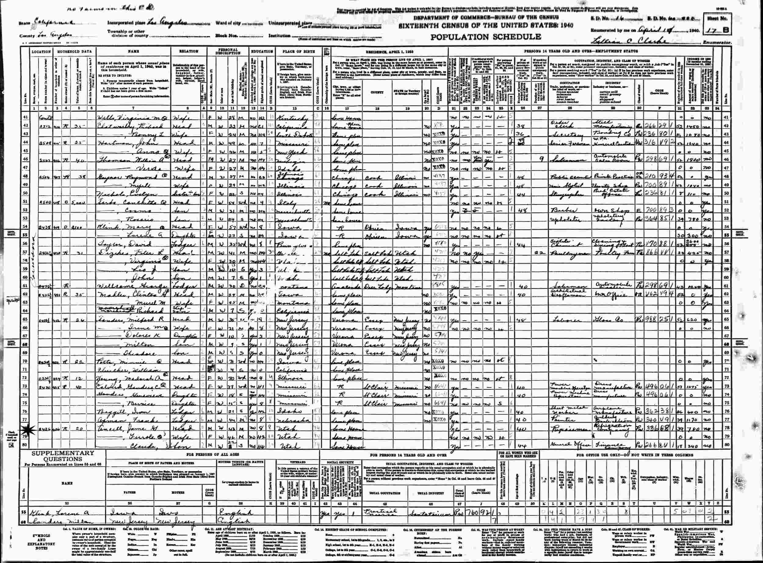 April 19, 1940 - 2426 Carmona, Supervisor's District 16, Enumeration Distrct 60-408, Los Angeles, Los Angeles County, California.
