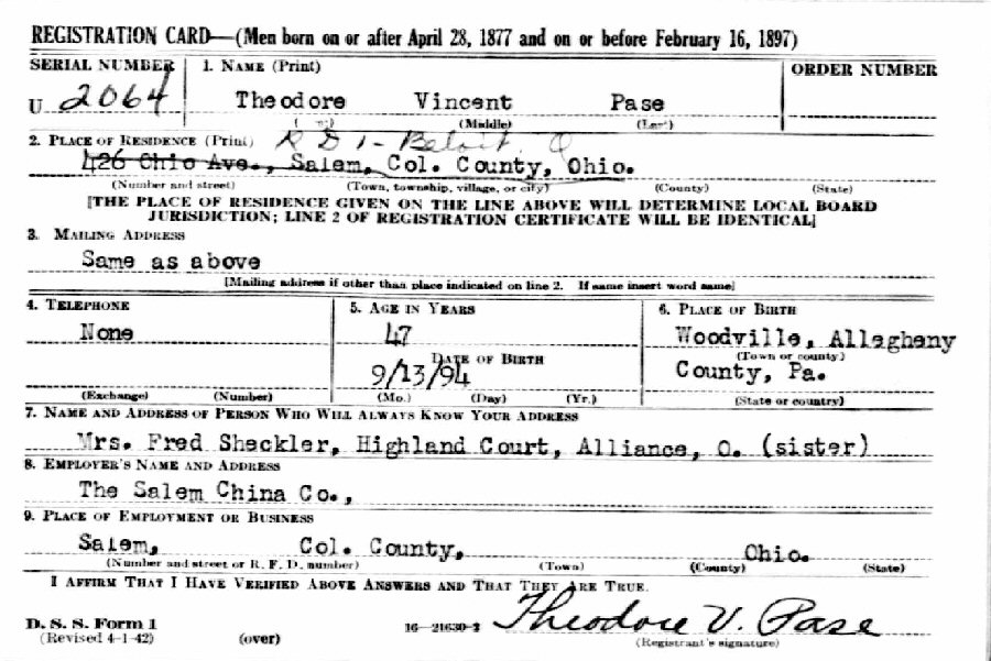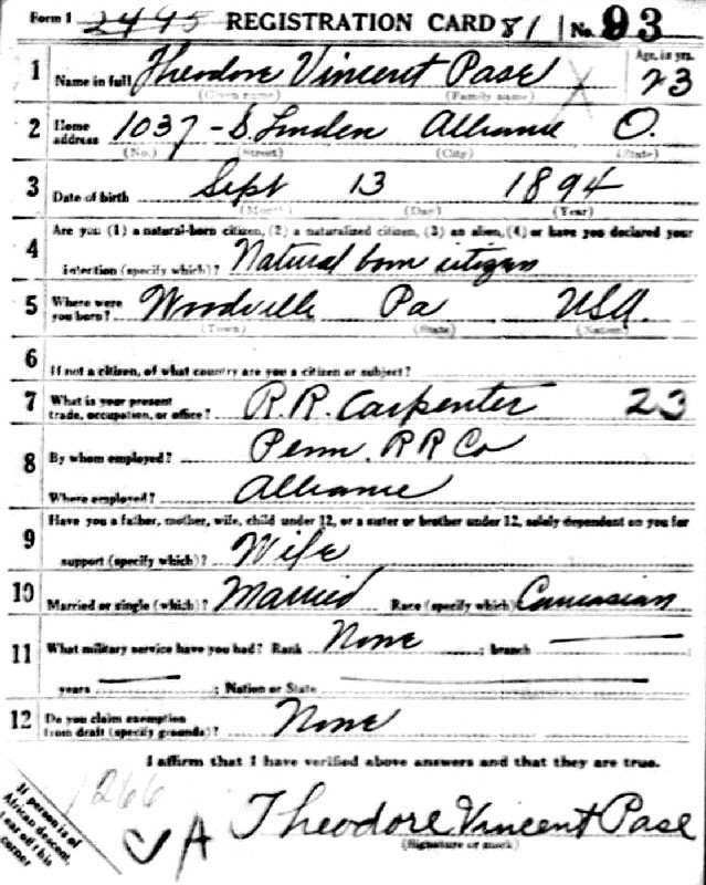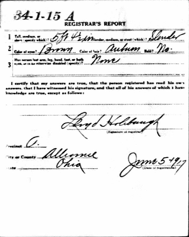 June 5, 1917 - 1037 S. Linden, Alliance, Stark County, Ohio.