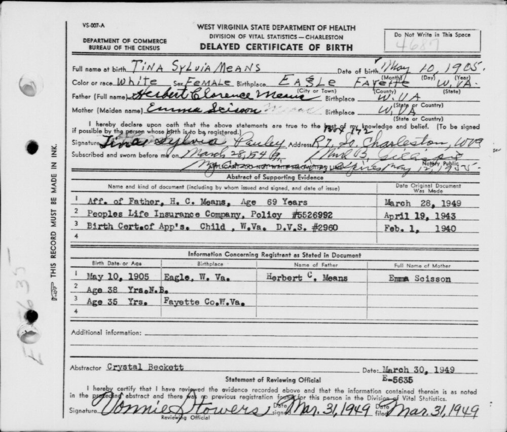 Notes for TINA SYLVIA MEANS PAULEY: