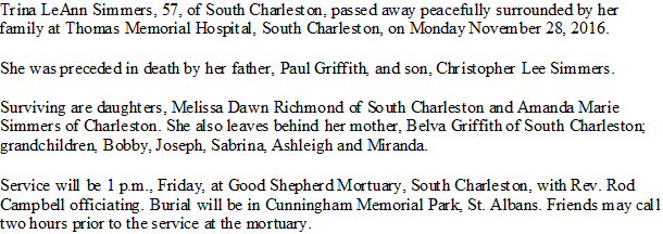 Notes for TRINA LEANN GRIFFITH SIMMERS: