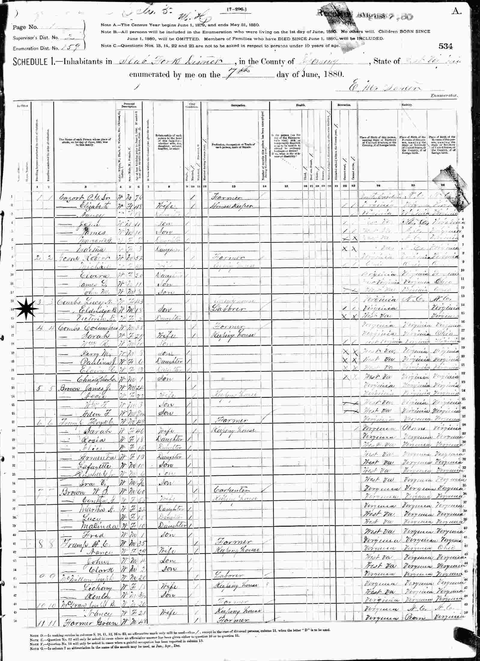 June 7, 1880 - Supervisor's District 2, Enumeration District 159, Slab Fork District, Wyoming County, West Virginia.