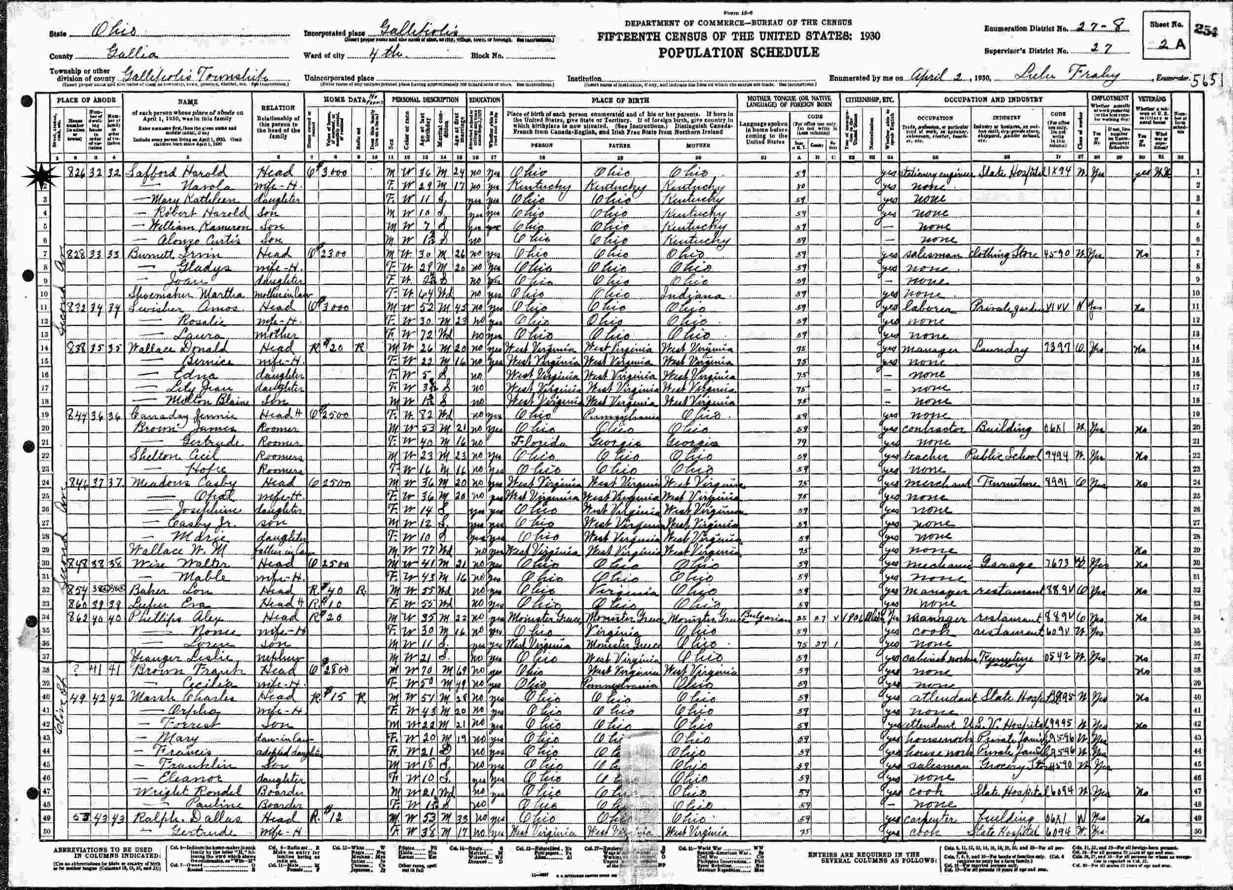April 2, 1930 - 826 Second Avenue, Ward 4, Supervisor's District 27, Enumeration District 27-8, Gallipolis County, Gallia County, Ohio.