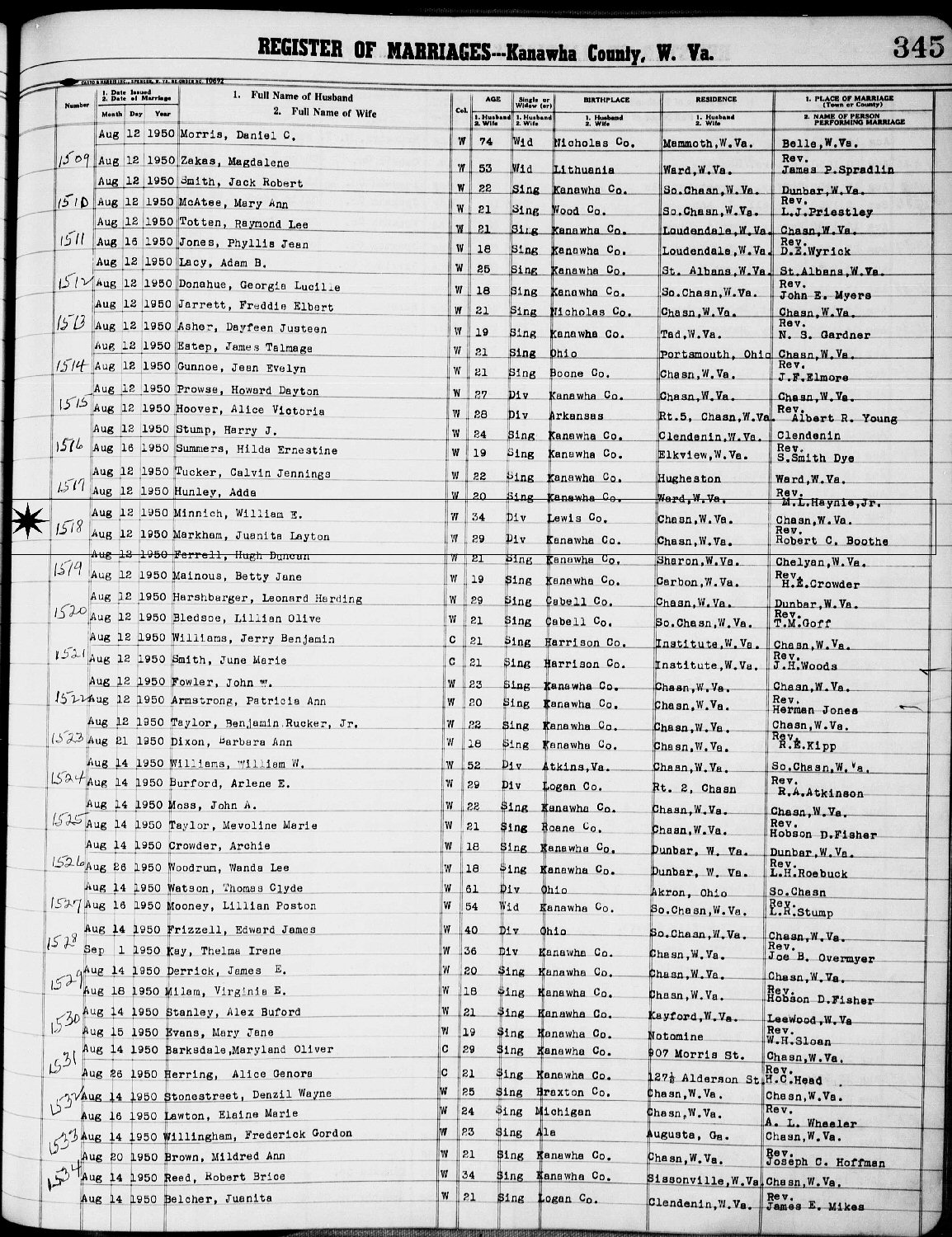 (2) Juanita Mooney August 12, 1950 in Charleston, Kanawha County, West Virginia.