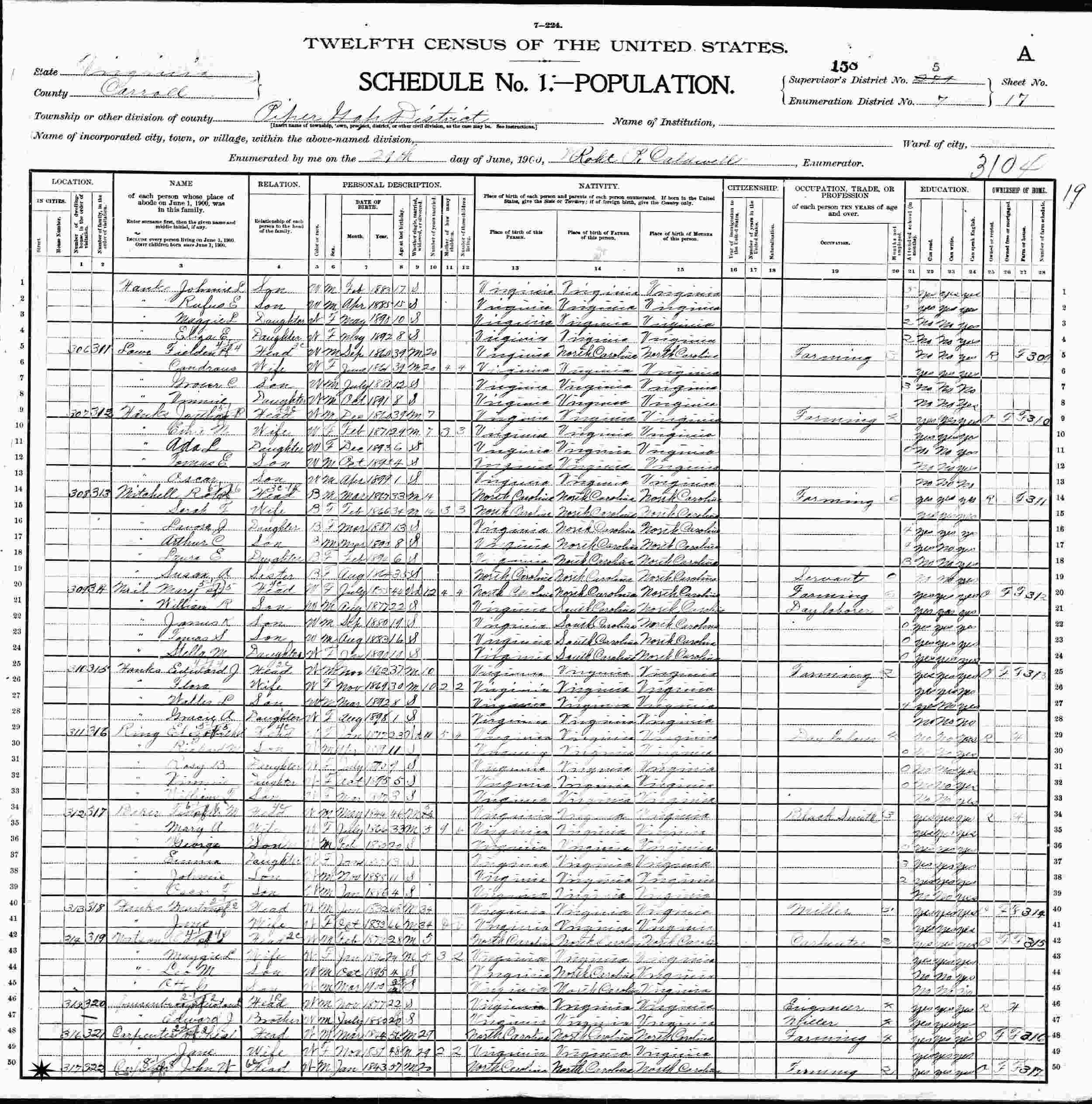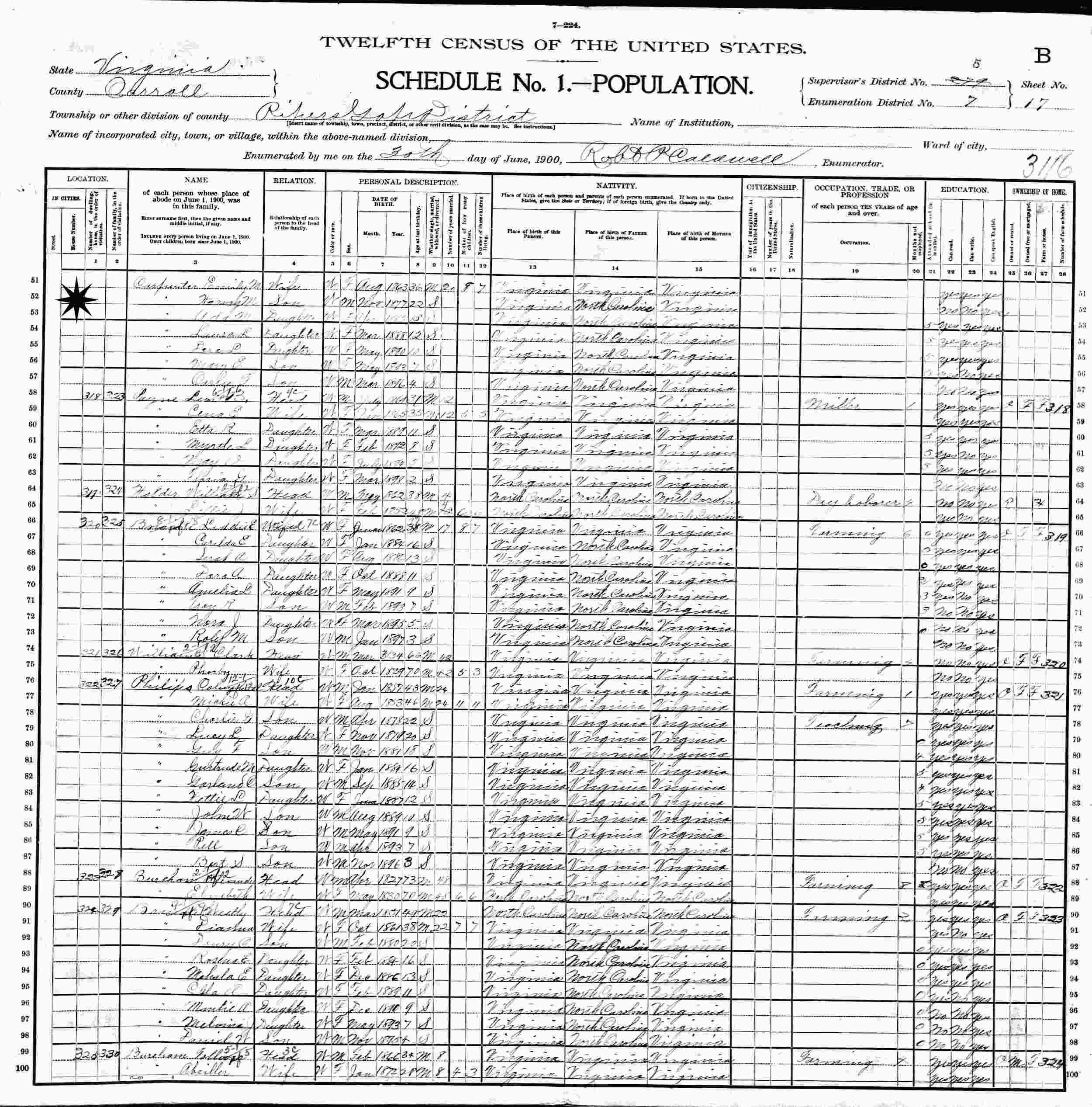 June 23, 1900 - Supervisor's District 5, Enumeration District 7, Piper's Gap, Galax County, Virginia.