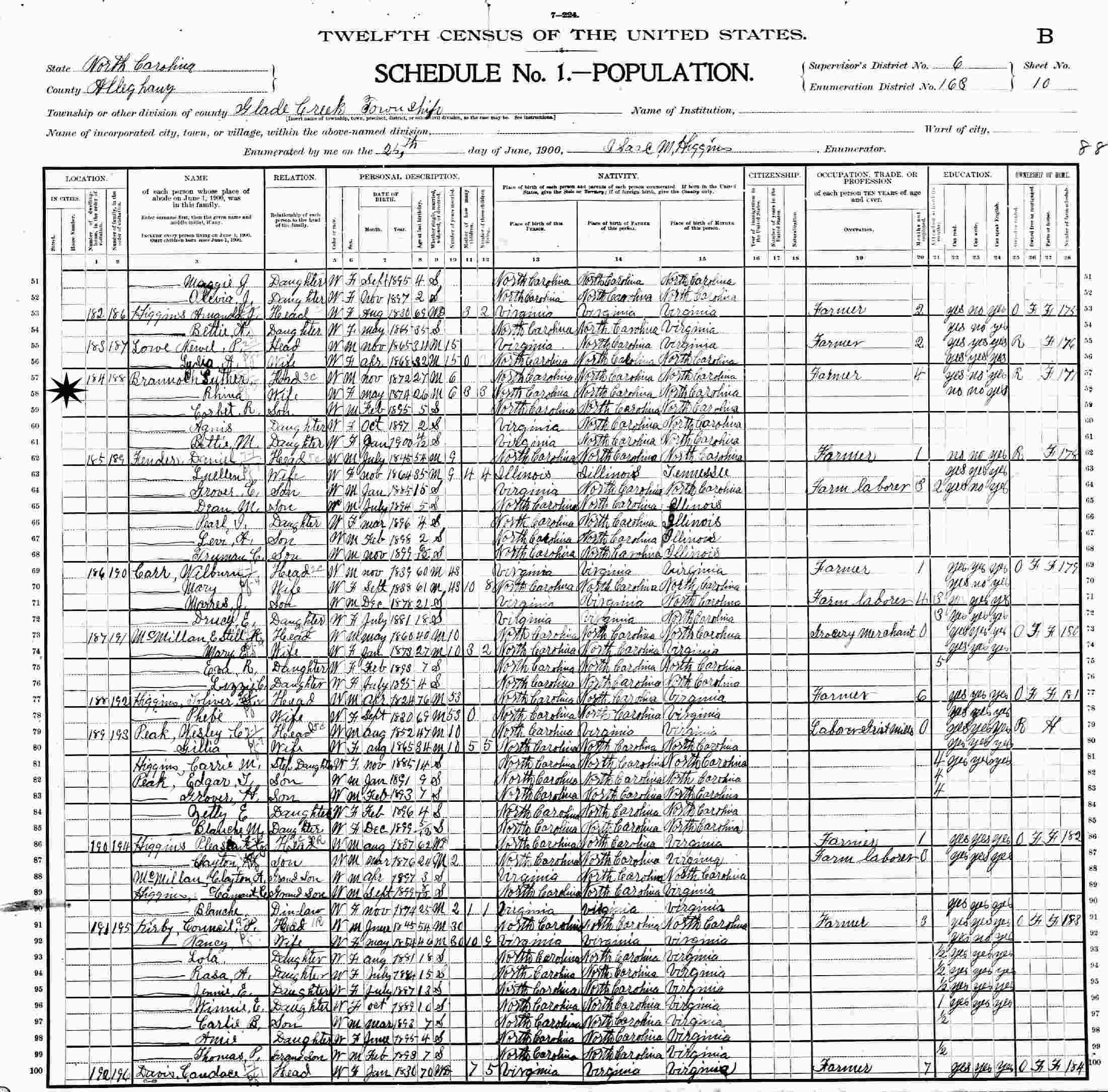 June 25, 1900 - Glade Creek Township, Supervisor's District 6, Enumeration District 168, Alleghany County, North Carolina.