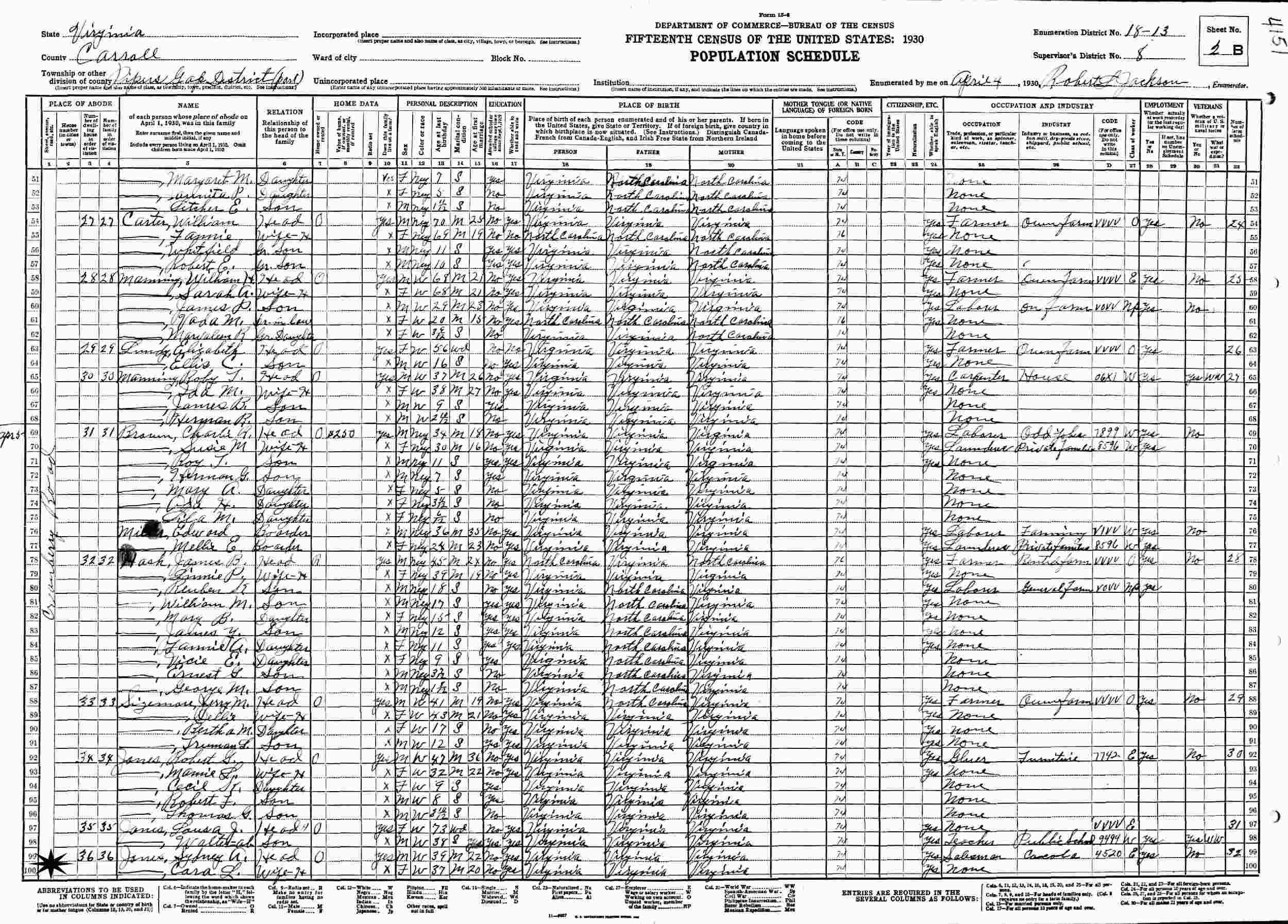 April 5, 1930 - Cranberry Road, Hanks Precinct, Supervisor's District 8, Enumeration District 18-13, Pipers Gap District, Carroll County, Virginia.