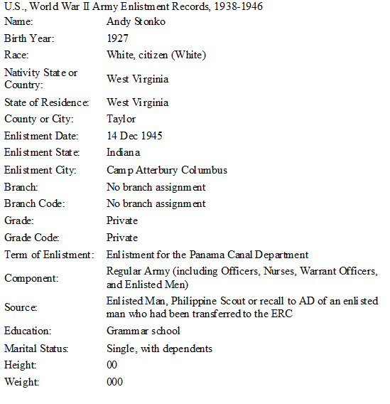 Notes for ANDREW "ANDY" STONKO: