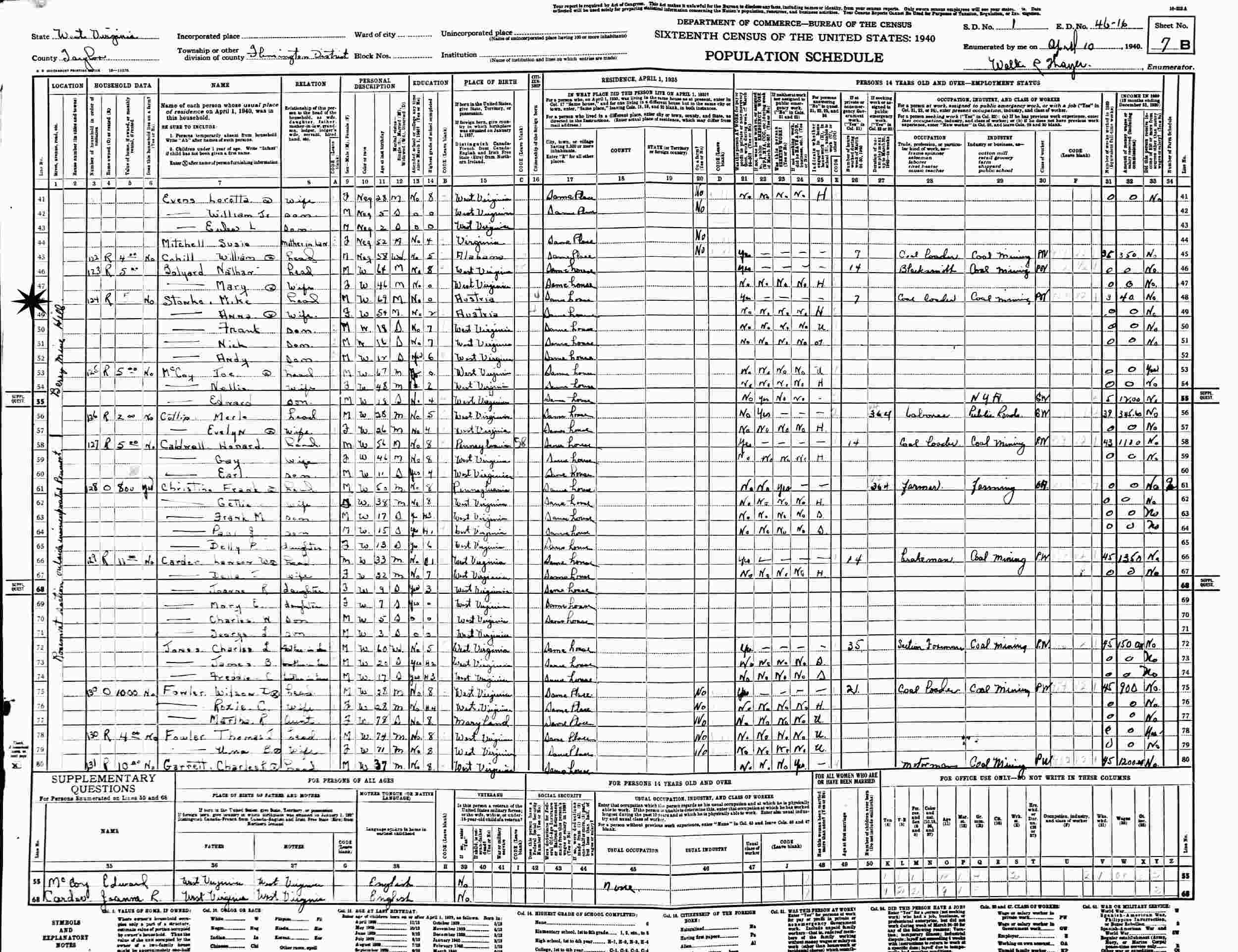April 10, 1940 - Berry Mine Hill, Supervisor's District 1, Enumeration District 46-16, Flemington District, Taylor County, West Virginia.