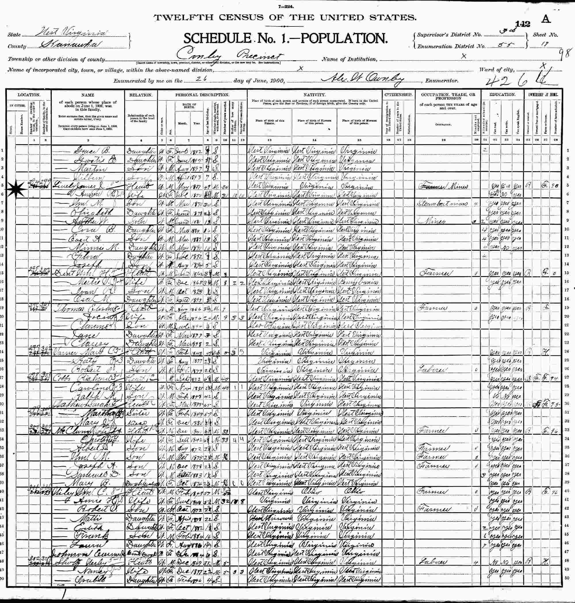 June 26, 1900 - Supervisor's District 3, Enumeration 55, Conley, Kanawha County, West Virginia.