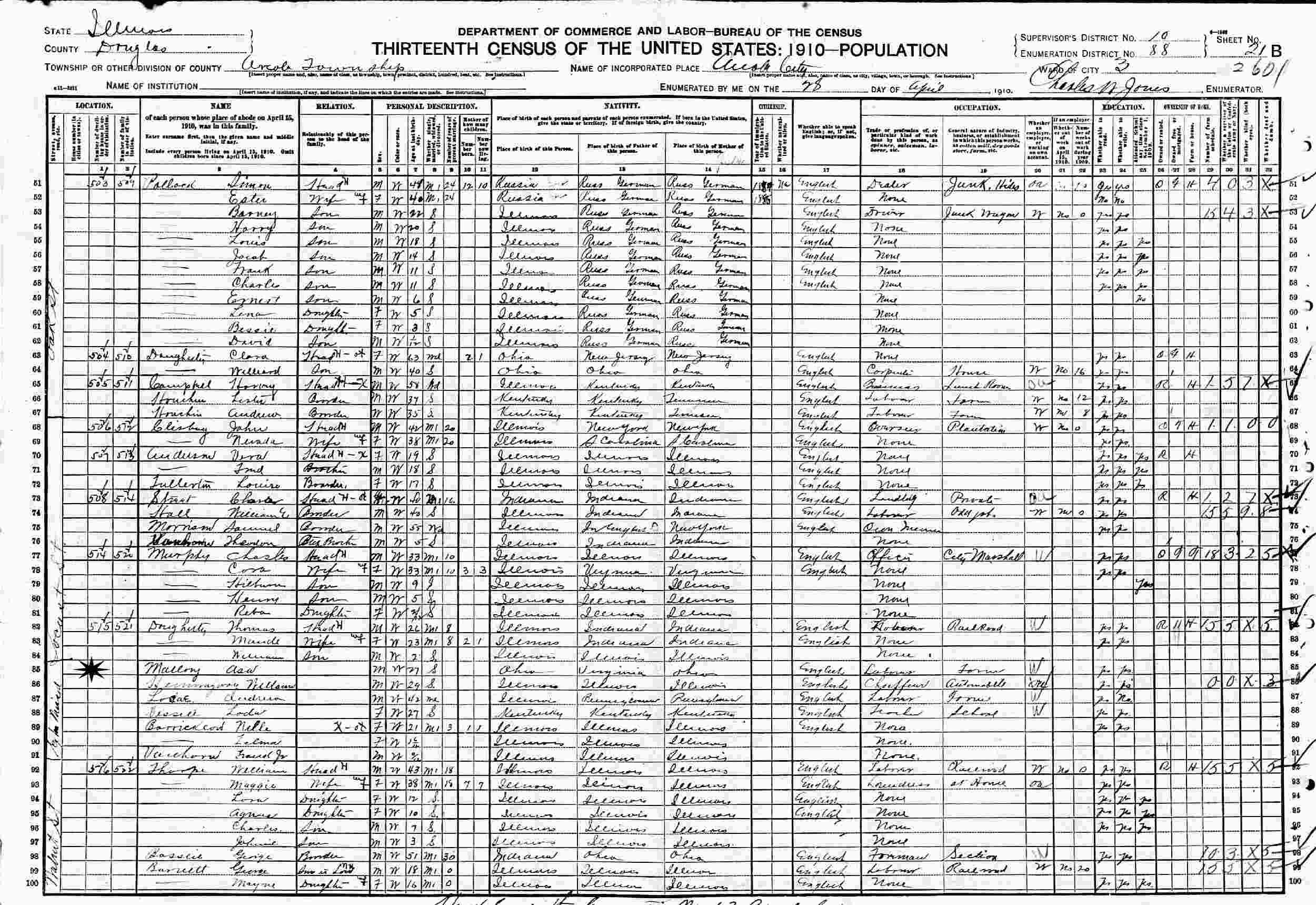 April 28, 1910 - ? Minard?, Ward 3, Supervisor's District 10, Enumeration District 88, Arcola, Douglas County, Illinois.