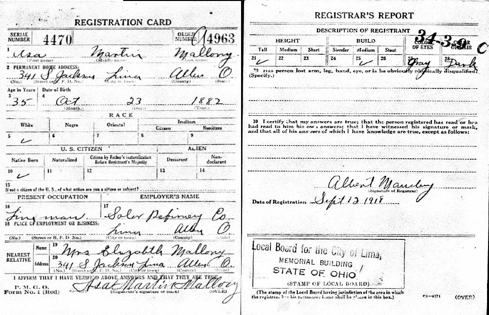 September 12, 1918 - 341 S Jackson, Lima, Allen County, Ohio.