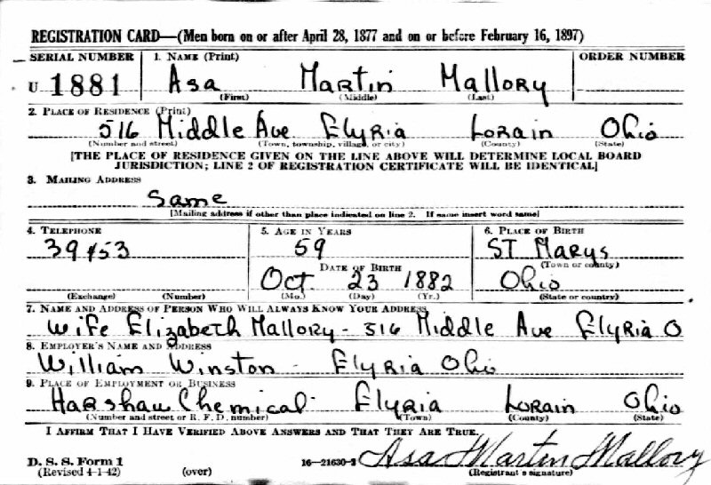 Son of James E and Malinda Catherine (Smith) Mallory.